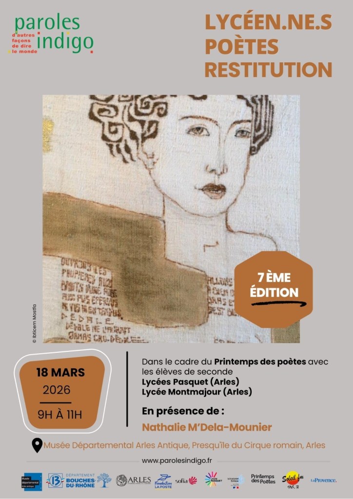 Les lycéen.ne.s arlésiens ayant participé à notre atelier de poésie et d’expression plastique en 2025 vont dévoiler leurs œuvres dans l’écrin du Musée Départemental Arles Antique. Ibticem Mostfa et moi nous en réjouissons et sommes impatientes de les découvrir !